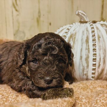 The F1b Bernedoodle is the result of crossing an F1 Bernedoodle with one of the parent breeds(usually Poodle). This cross typically has a higher percentage of Poodle genetics, usually around 75% Poodle and 25% BMD.